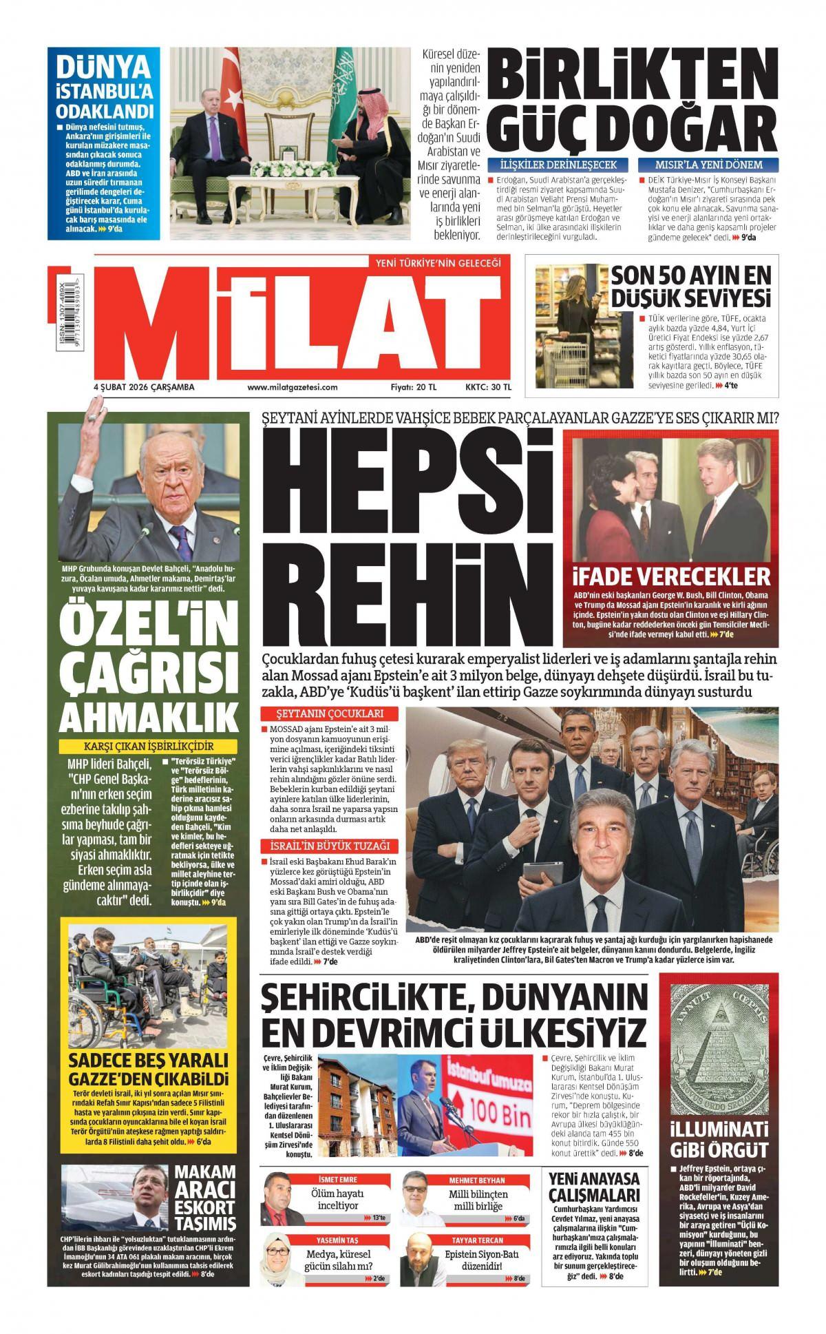 Milat Gazetesi 5 Şubat 2026 Günü Gazete Manşetleri