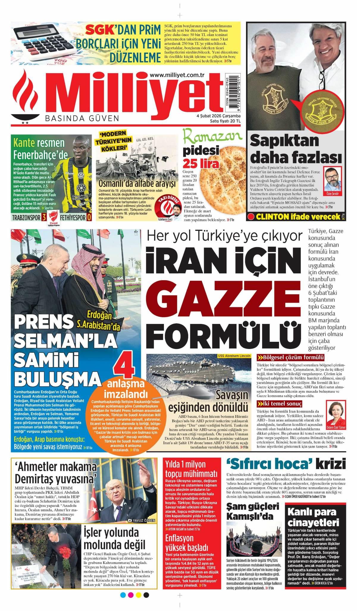 Milliyet Gazetesi 5 Şubat 2026 Günü Gazete Manşetleri