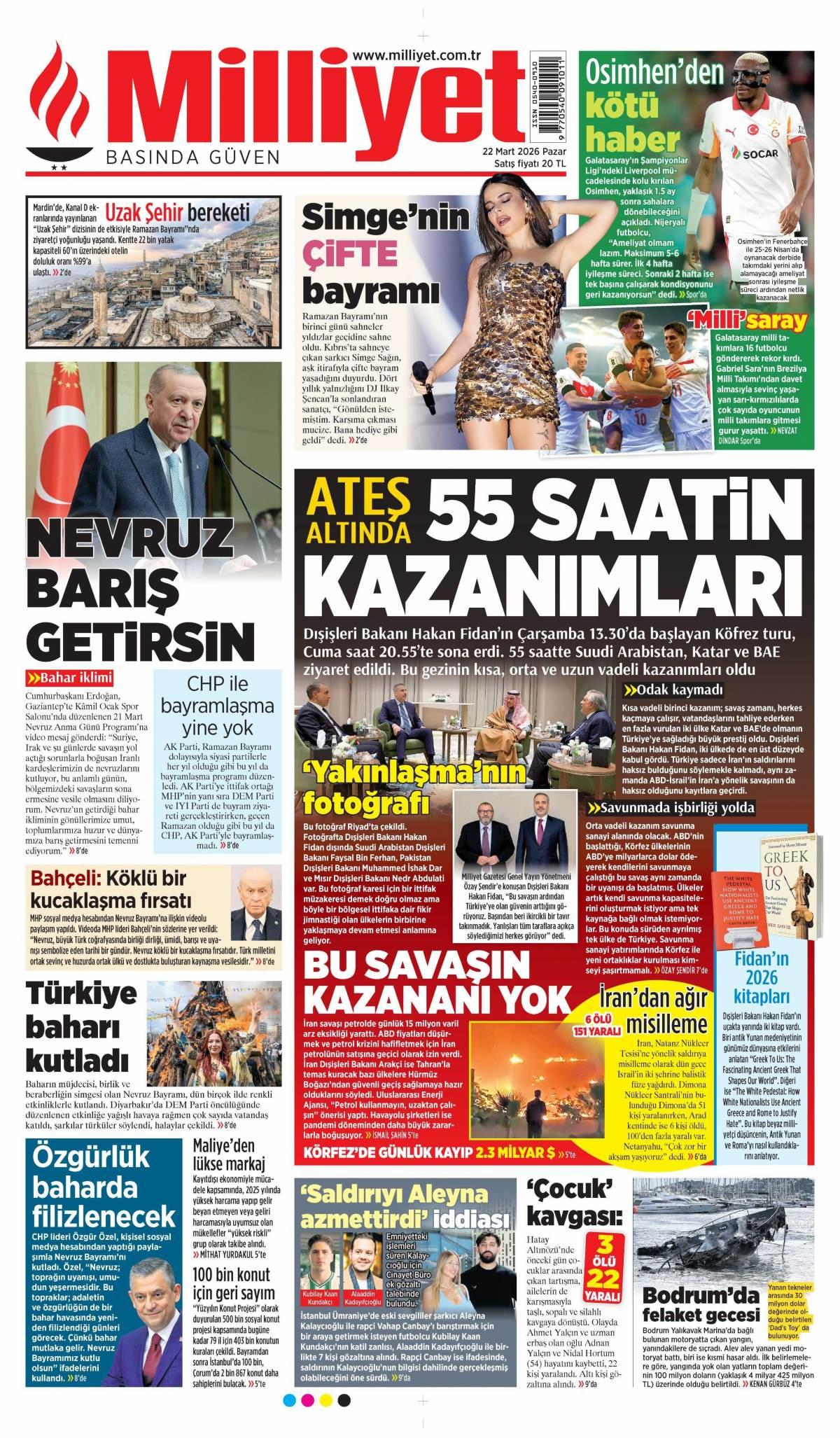 Milliyet Gazetesi 23 Mart 2026 Günü Gazete Manşetleri