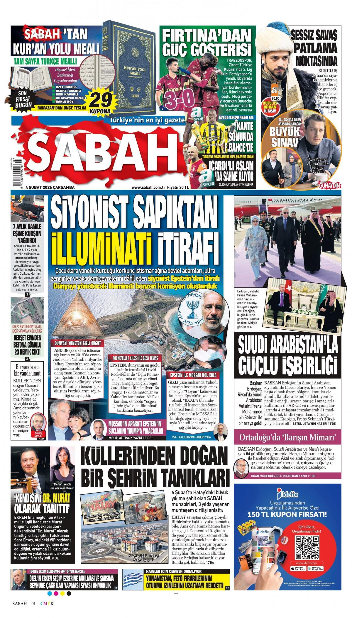 Sabah Gazetesi 5 Şubat 2026 Günü Gazete Manşetleri