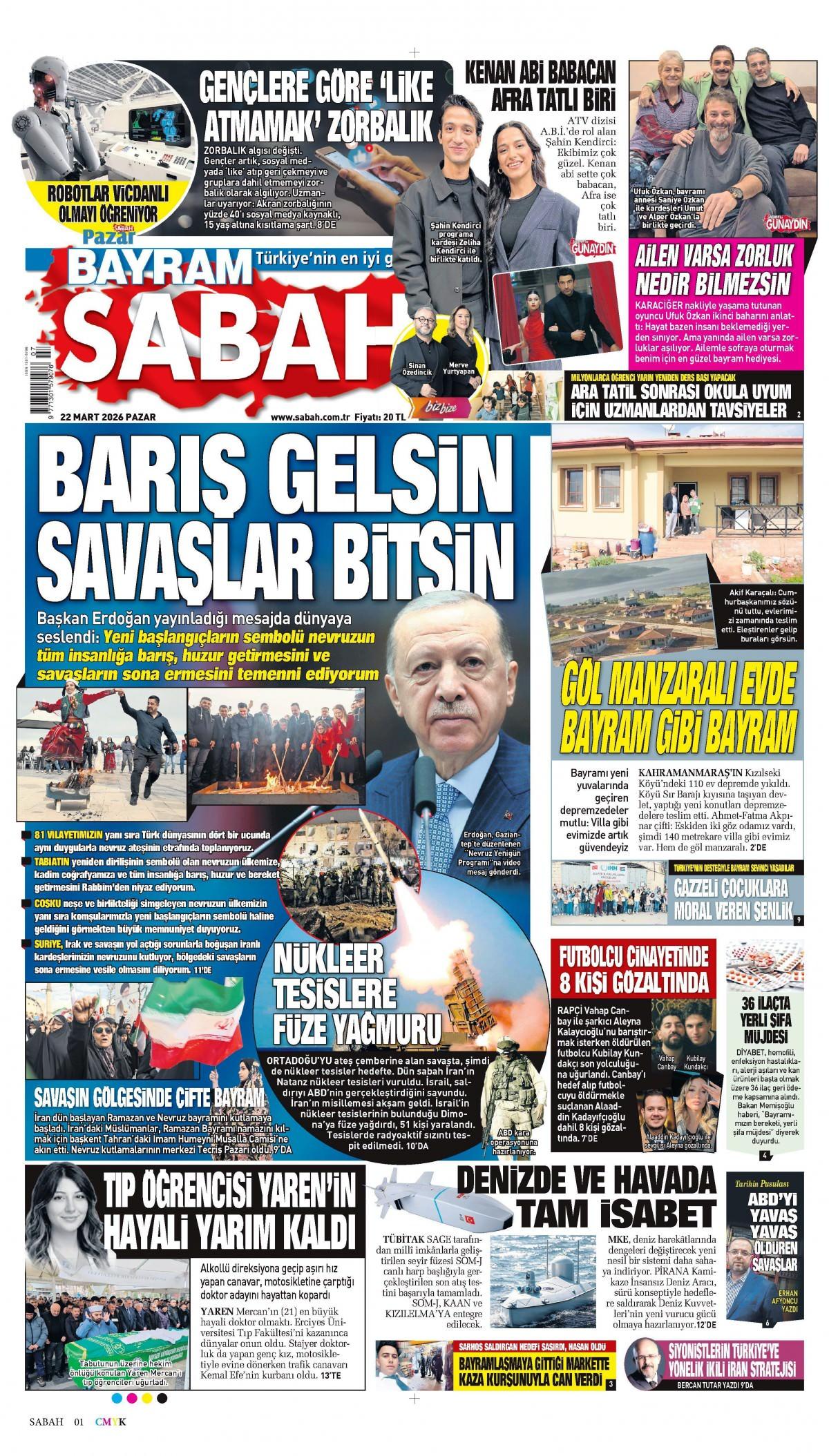 Sabah gazetesinin 23 Mart 2026 tarihli gazete manşetlerine göz atın, en son gelişmeler ve öne çıkan haberlerle Türkiye'nin gündemini takip edin!