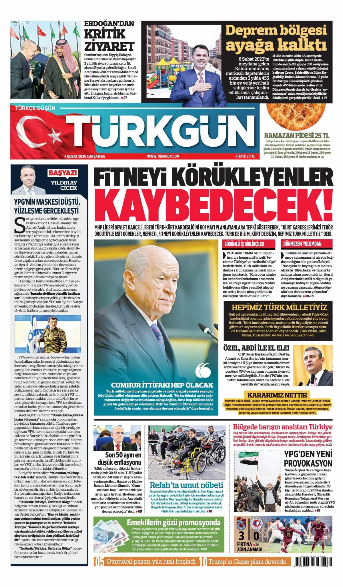 Türkgün Gazetesi 5 Şubat 2026 Günü Gazete Manşetleri