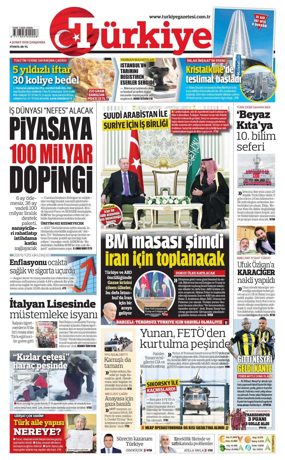 Türkiye Gazetesi 5 Şubat 2026 Günü Gazete Manşetleri