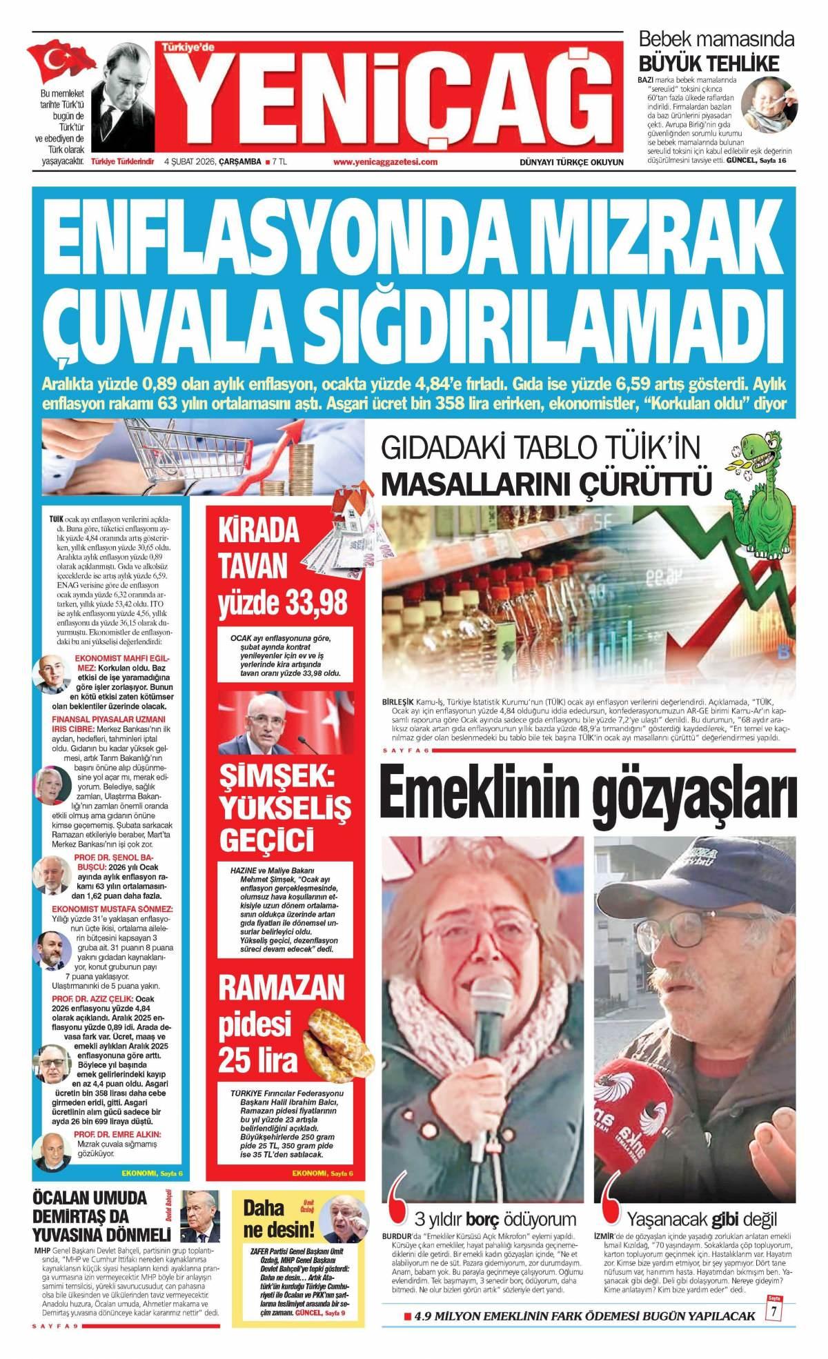 Yeni Çağ Gazetesi 5 Şubat 2026 Günü Gazete Manşetleri